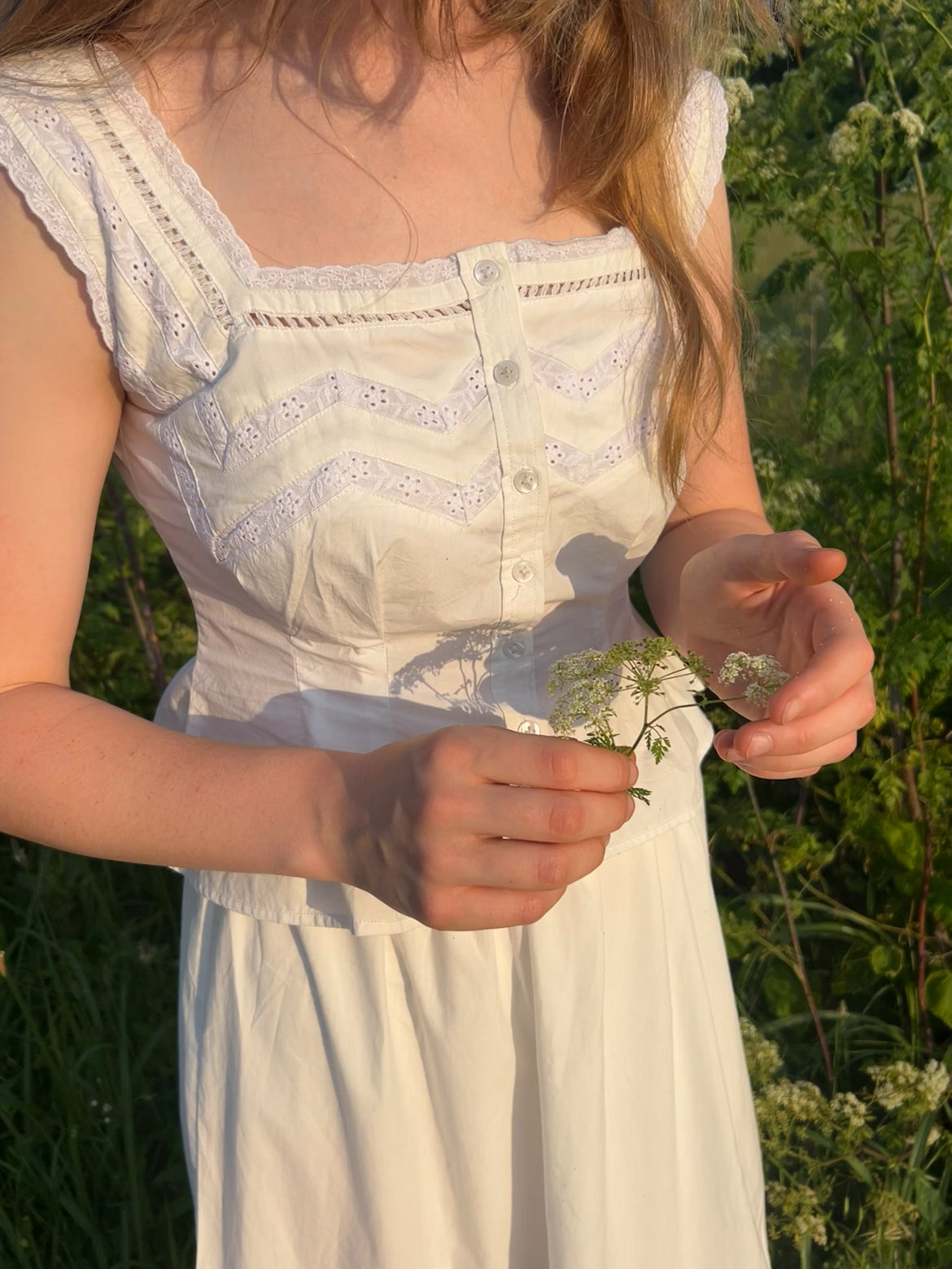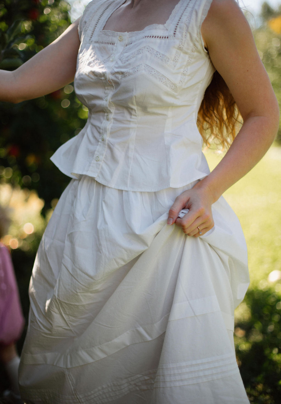 The long-awaited matching blouse to our Manon skirt; expertly handcrafted by artisans in India, with the daintiest lace detailing and ribbed bodice for an impeccable fit. Inspired by dreamy Edwardian corset covers and crafted out of cotton poplin for that crisp, antique feel.